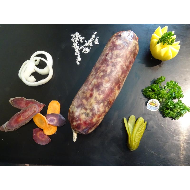 Ingrédients : Abats de porc, sel, LACTOSE, dextrose, poudre de jus de blettes, sucre, carottes déshydratées, poivre, ail.