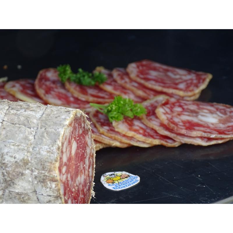 Ingrédients: Maigre et gras de porc, vin rouge, sel, LACTOSE, dextrose, poudre de jus de blettes, sucre, carotte déshydratées, poivre et ail.