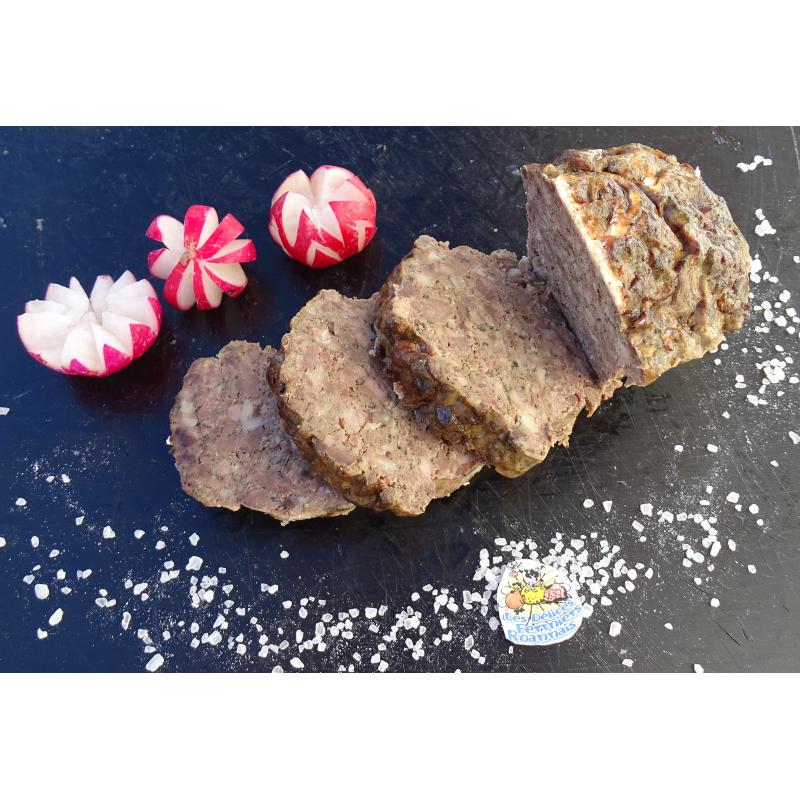 Ingrédients : Maigre, gras et foie de porc, farine de BLE, sel, dextrose, poudre de jus de blettes, sucre, carottes déshydratées, poivre, cognac, ail, persil et oignons.