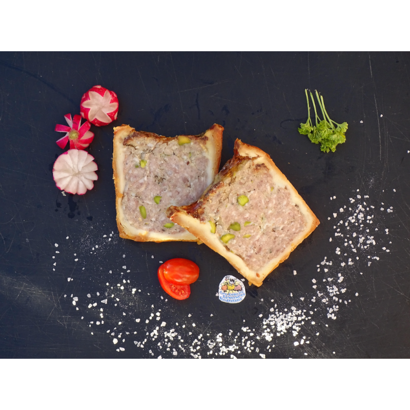 Pâté croûte aux pistaches en tranches (+/- 250g : 2 tranches)