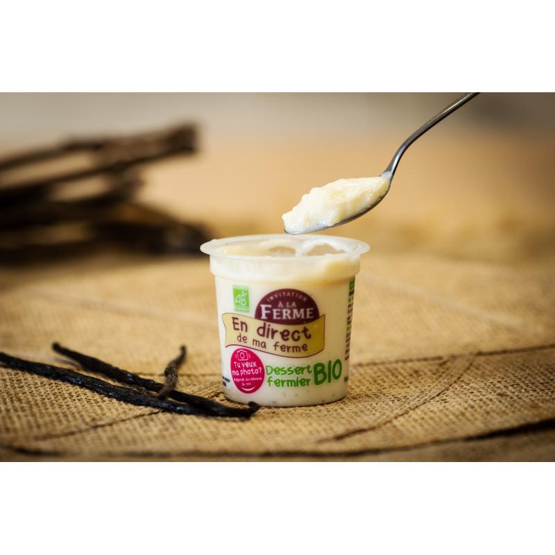 riz au lait à l'extrait de vanille transformé sur notre ferme avec le lait produit par nos vches sur notre exploitation en agriculture biologique