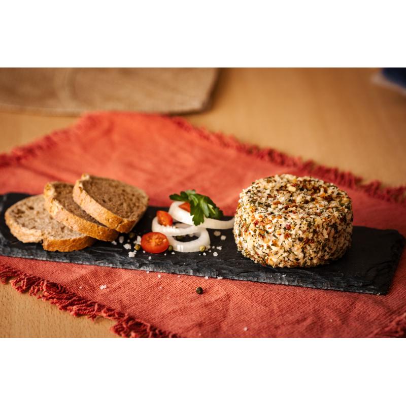 Ingrédients : ferments lactiques, présure, sel, ail, oignon, échalote, tomate, persil, poivre, ciboulette, estragon