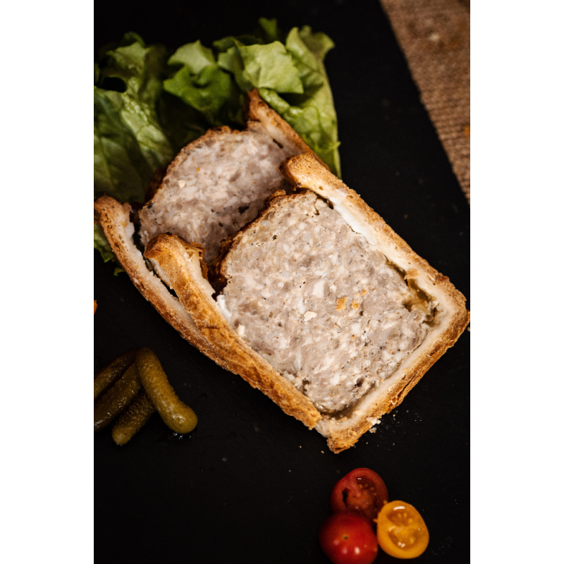 Ingrédients : Gorge et Viande de porc, saindoux, FARINE DE BLE*, BEURRE, AIL, Cognac, oeuf, sucre