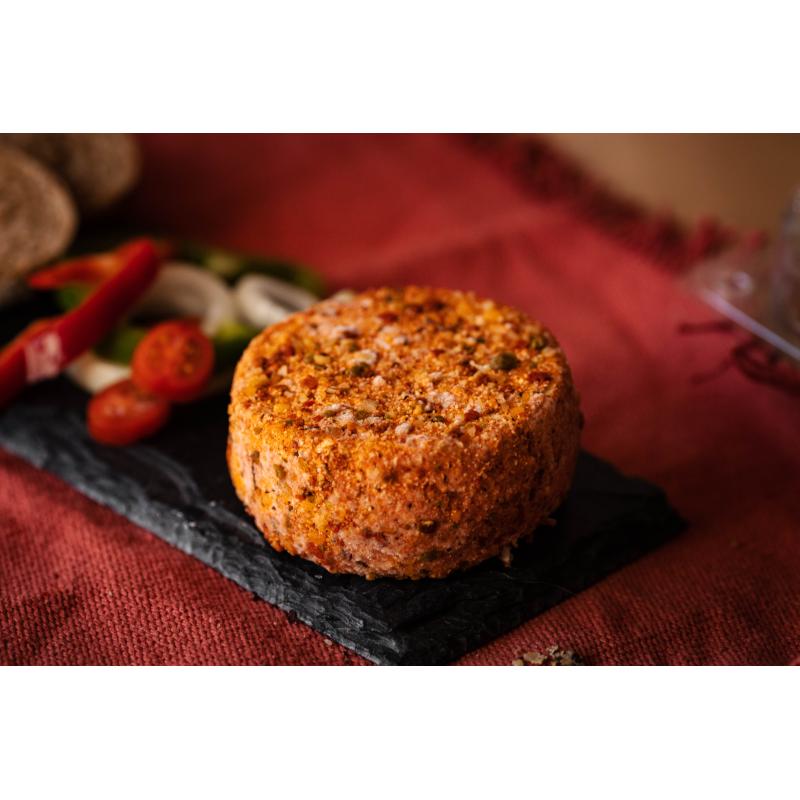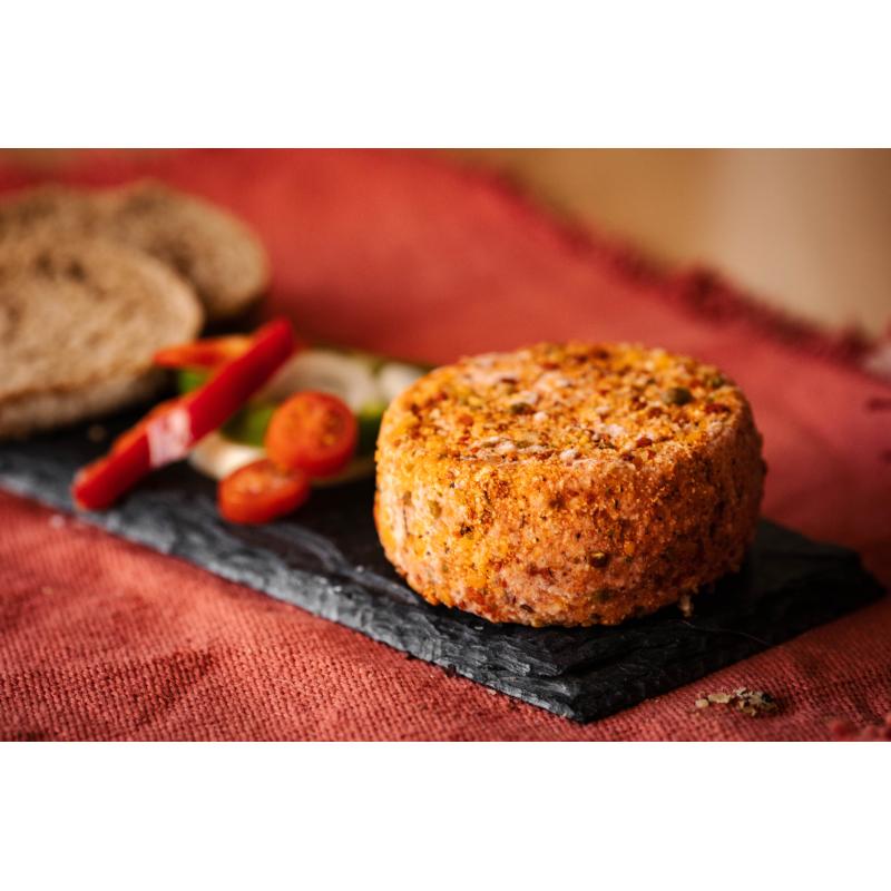 Ingrédients : chapelure( farine de blé, sel, eau, levure), poivrons rouge et vert, oignon, ail, tomate, paprika, herbes de Provence (romarin, thym, basilic, marjolaine), carvi,fenouil, poivre noir, piment fort, colorant : E160C.