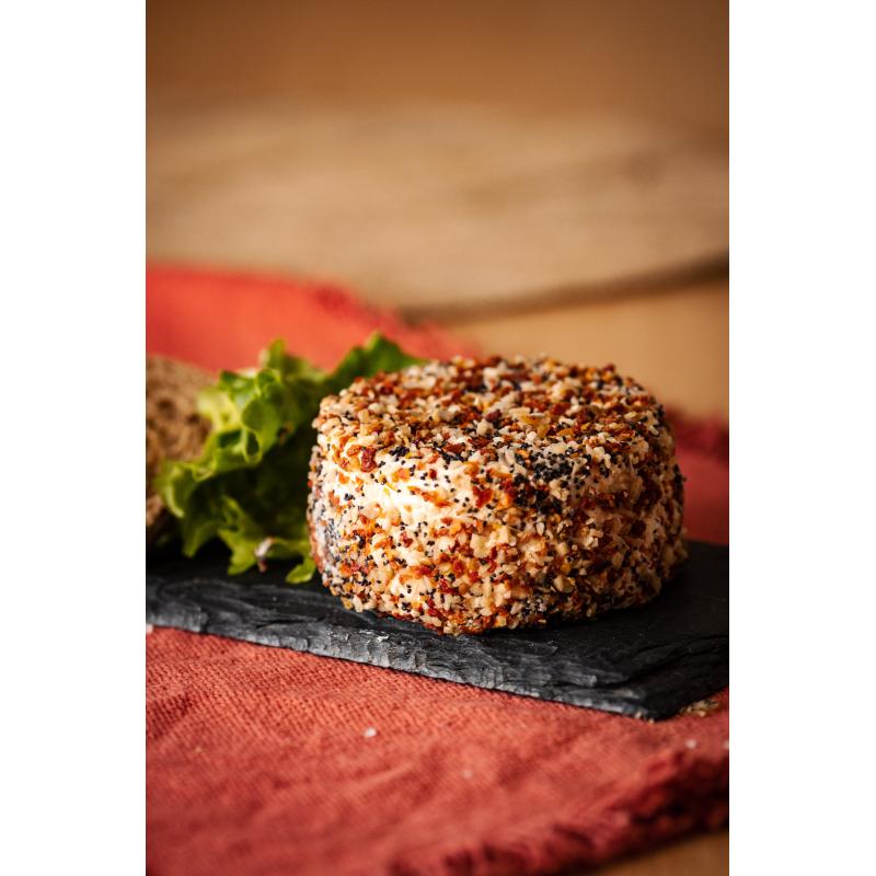 Ingrédients : ferments, présure, sel, échalote,graines de pavot, tomate,graines de sésame.