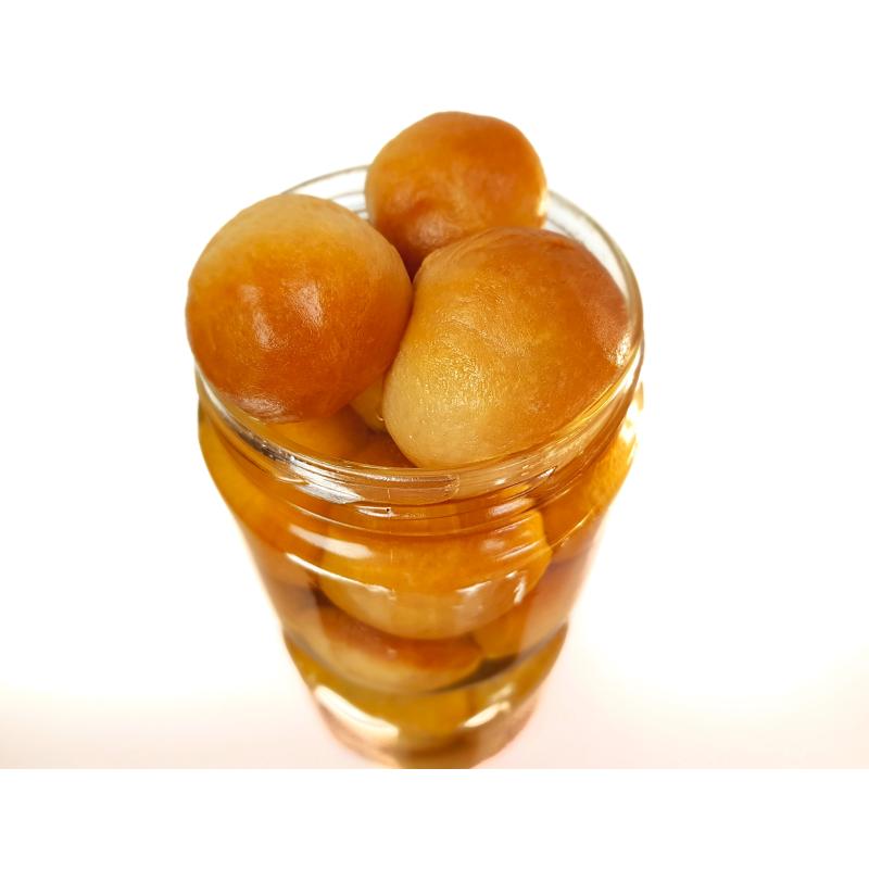 Délicieux babas imprégnés d'un sirop au rhum en bocaux. Poids: 350 g