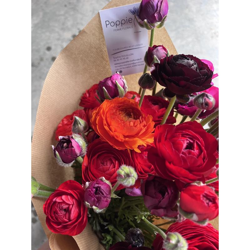 Botte de fleurs de saison (renoncules, anemones, tulipes, dahlias ...) d'une valeur de 12 euros