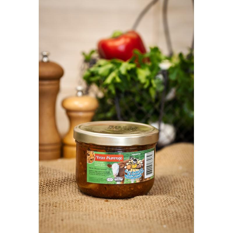Ingrédients : Maigre et gras de veau, tomates, farine de maïs, champignons de Paris, oignons, sel, poivre, ail, herbes de Provence