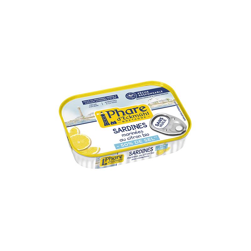 Sardines marinade citron bio sans huile -50% de sel 115g - Phare d’Eckmuhl